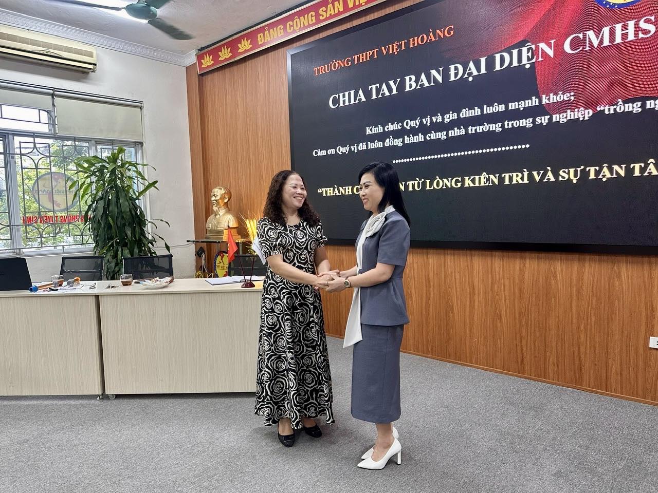 💐 Buổi gặp gỡ cũng là dịp để ra mắt BĐD CMHS trường năm học 2025-2026, đồng thời chia tay BĐD CMHS nhiệm kỳ trước. Đặc biệt, lời phát biểu chia tay đầy xúc động của bác Nguyễn Thị Huệ – Trưởng ban BĐD CMHS đã để lại nhiều tình cảm sâu lắng, cùng với đó là sự bàn giao công việc cho BĐD khóa dưới tiếp tục kế thừa và phát huy.