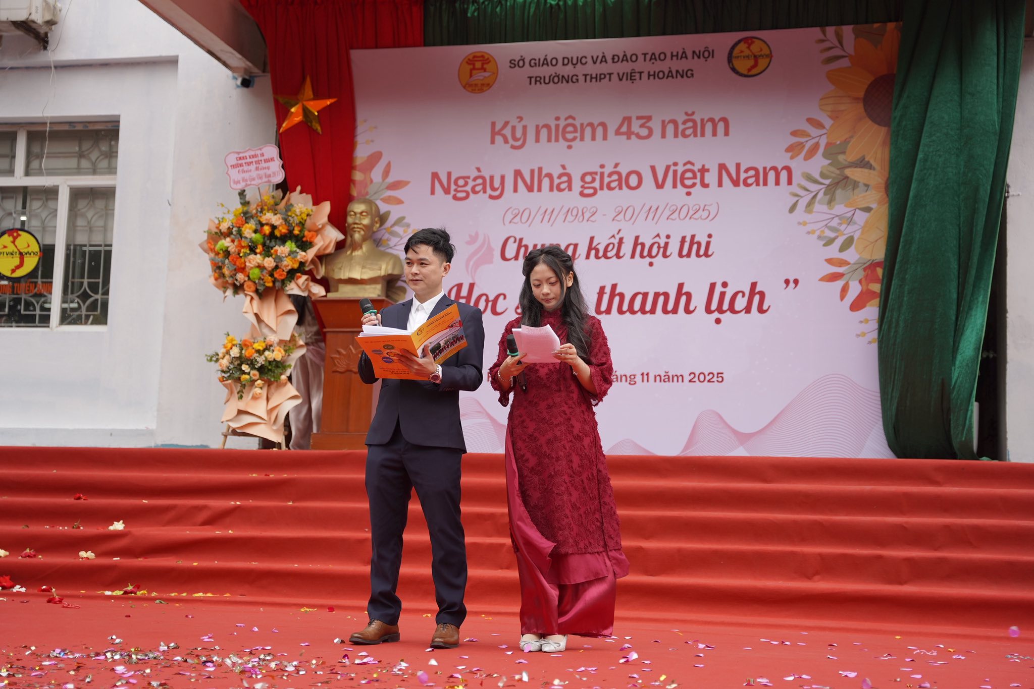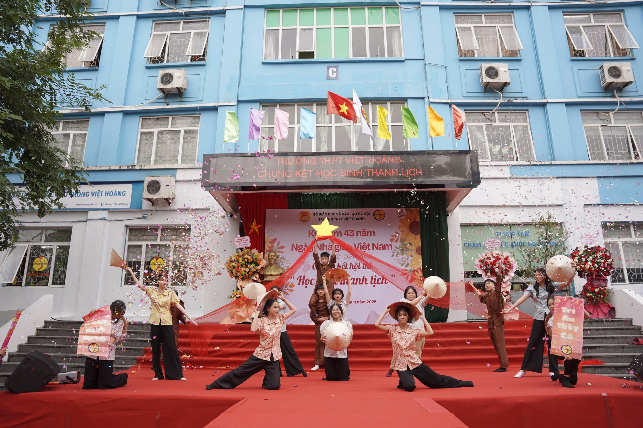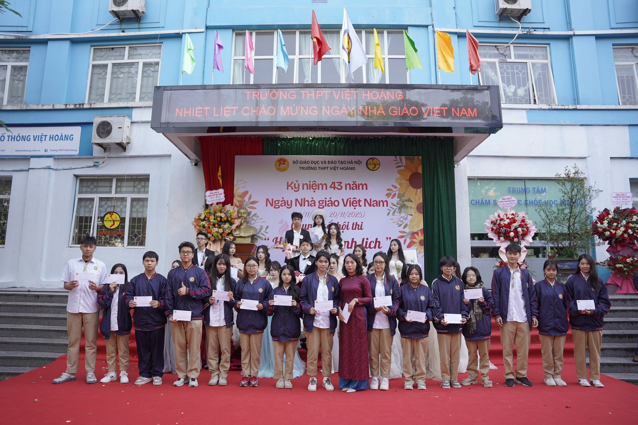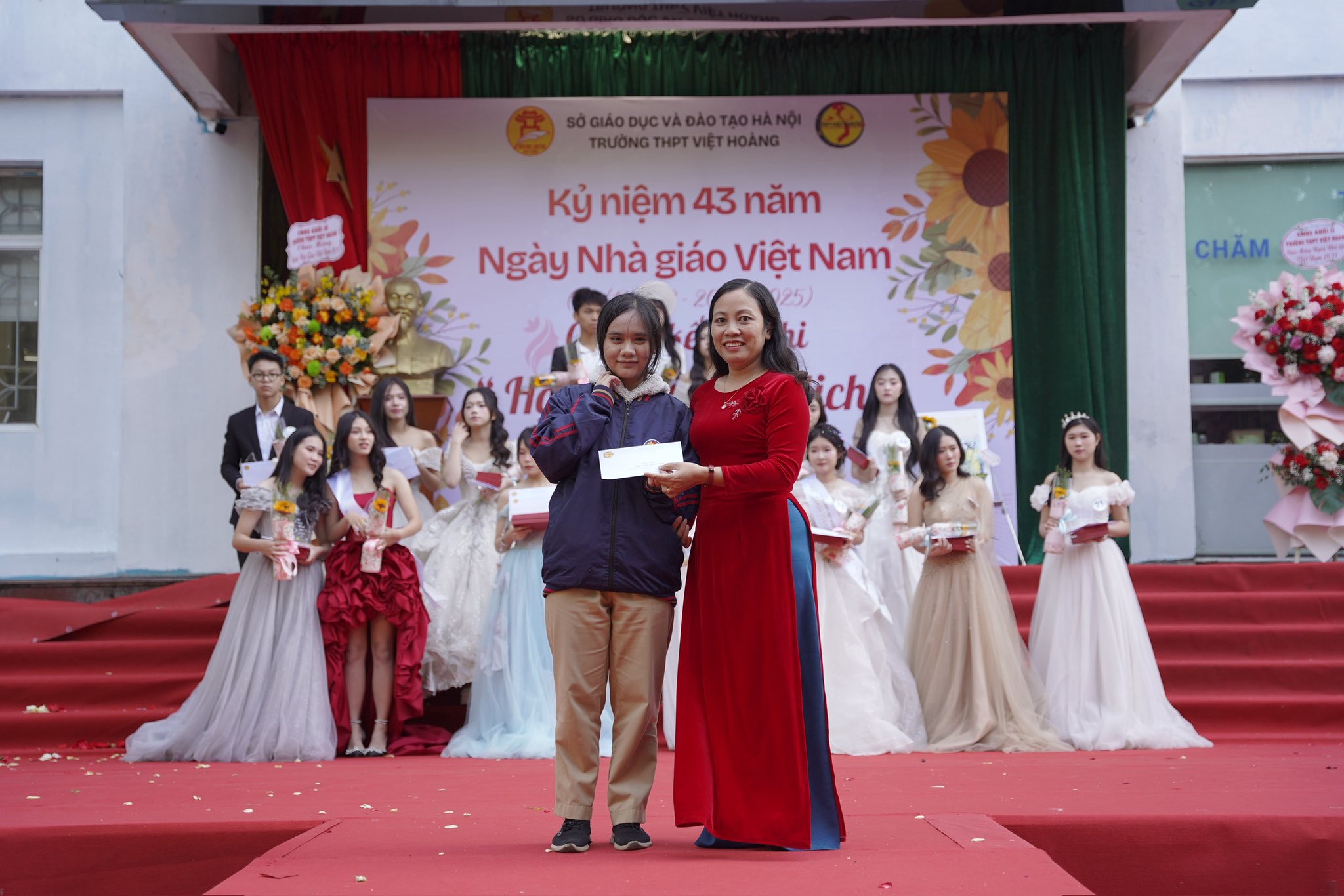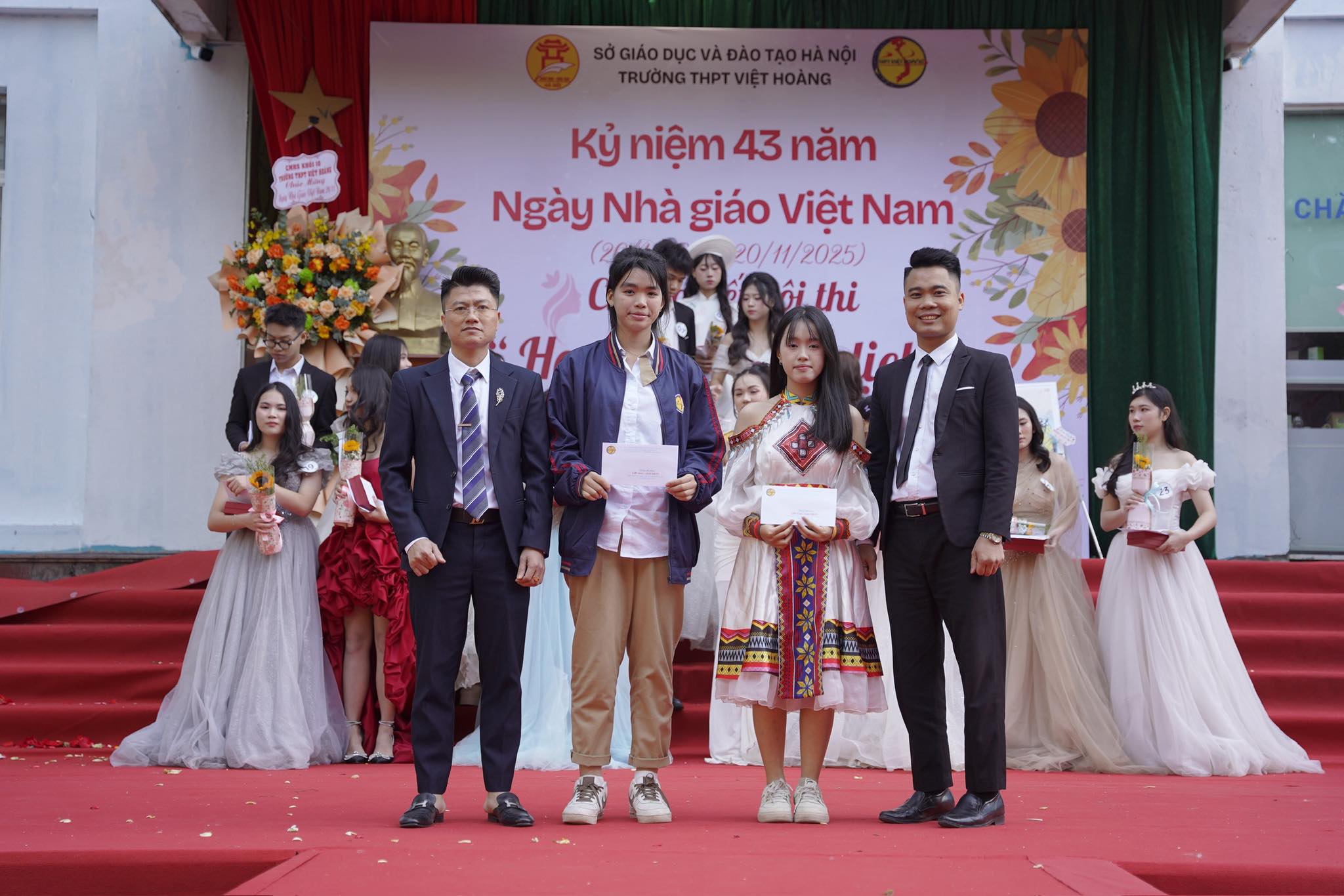 Buổi lễ là dịp để học sinh bày tỏ lòng biết ơn sâu sắc tới các thầy cô – những người đã tận tụy dạy dỗ, truyền cảm hứng và dìu dắt các thế hệ học trò trưởng thành. Những tiết mục văn nghệ đặc sắc, những bó hoa tươi thắm cùng lời chúc chân thành đã tạo nên một chương trình đầy cảm xúc, lưu giữ nhiều khoảnh khắc ý nghĩa.