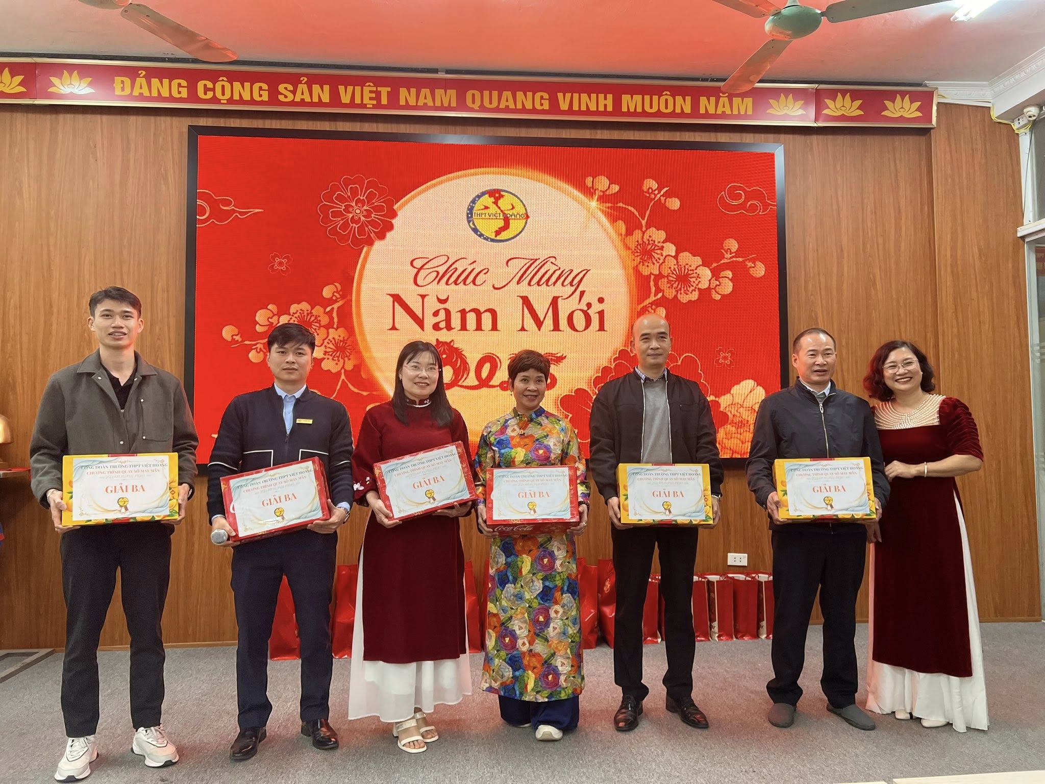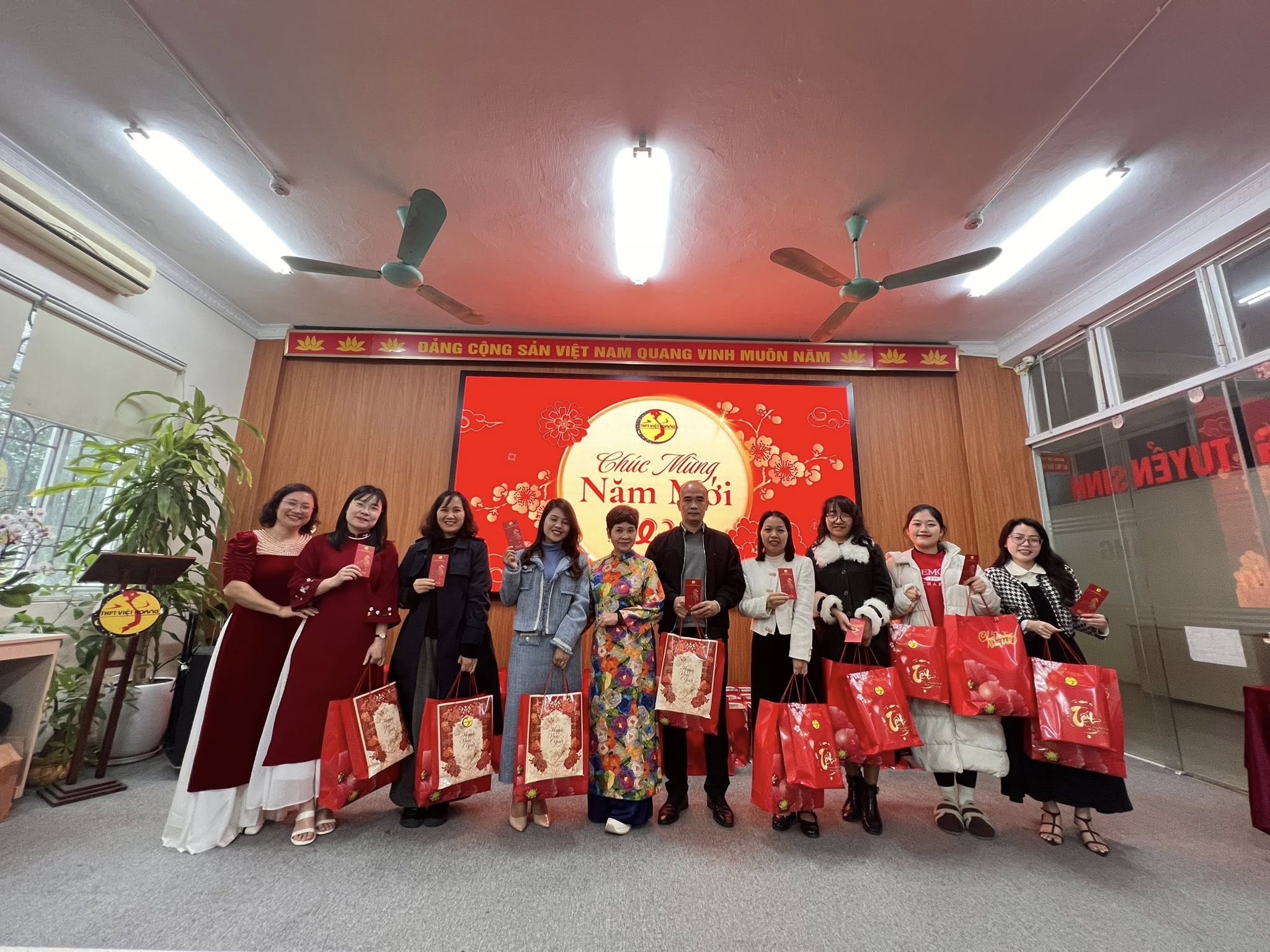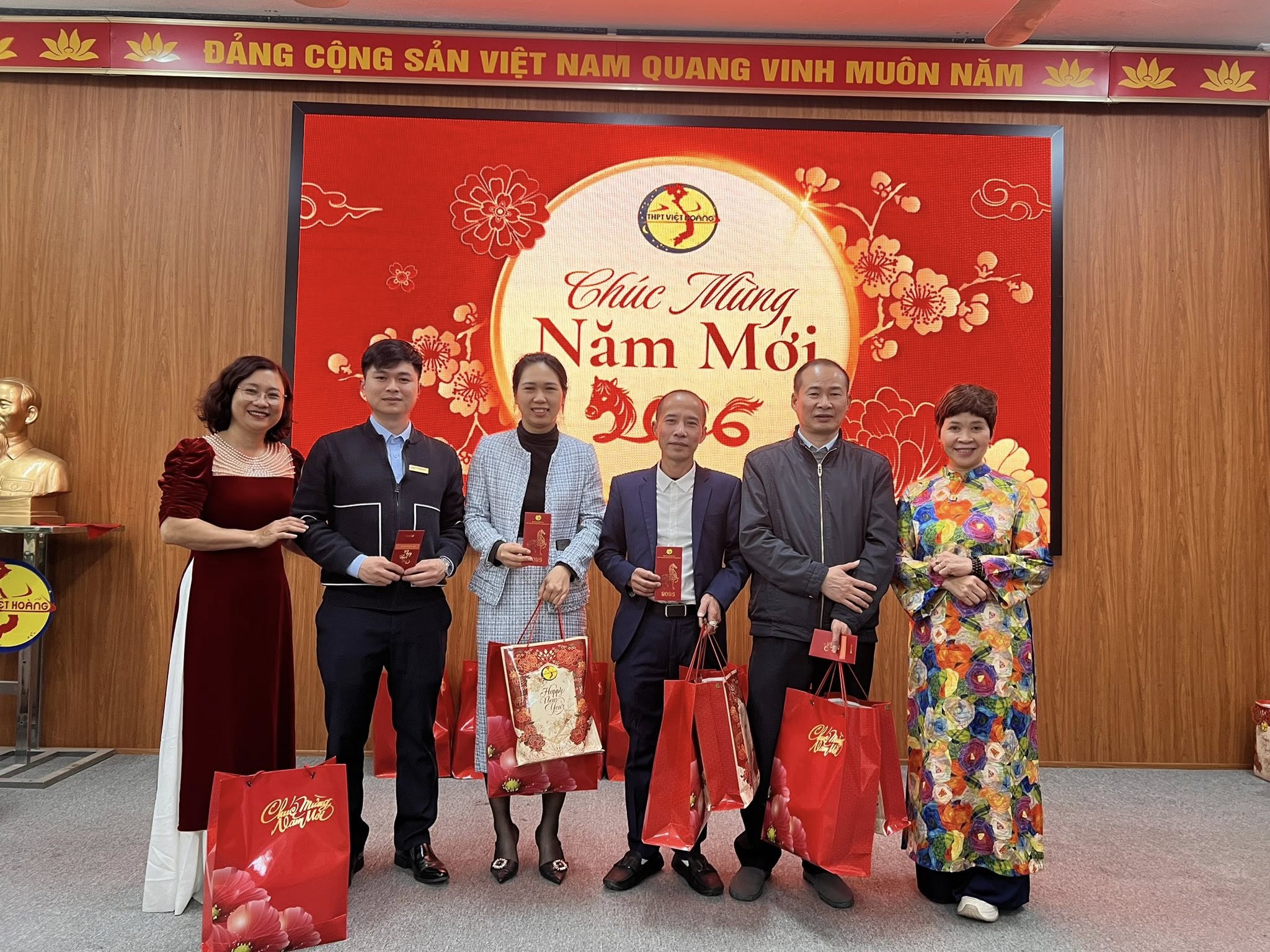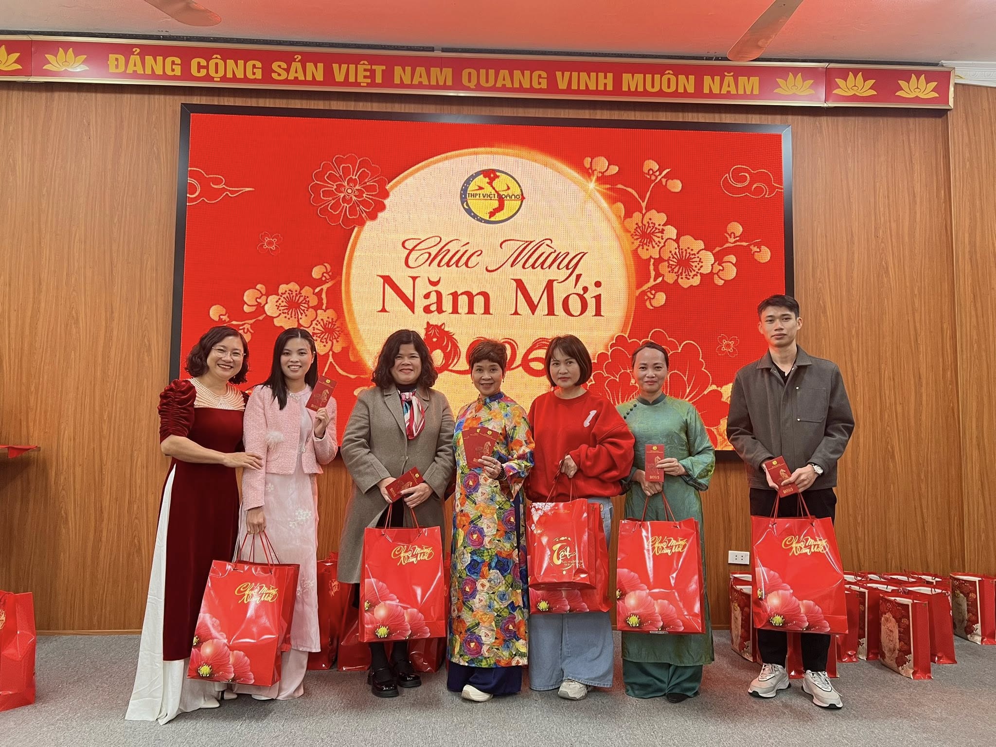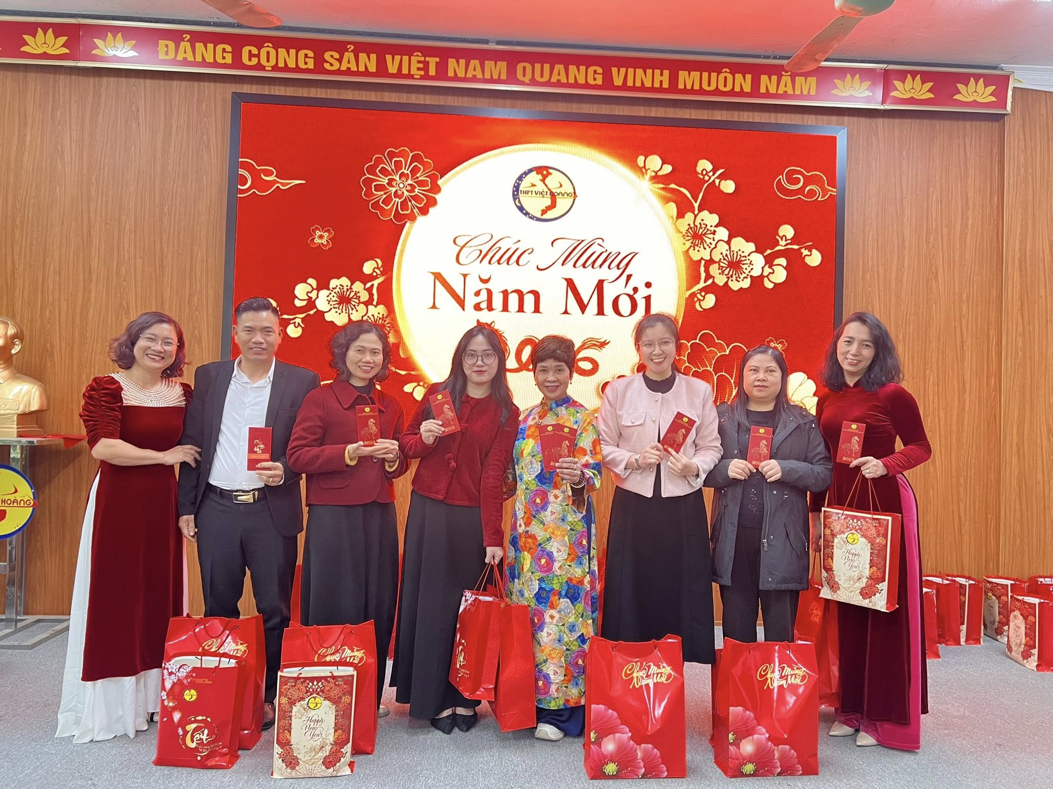 🌿Trong không khí ấm áp và thân tình của buổi sáng hôm nay, Trường THPT Việt Hoàng đã tổ chức Lễ Sơ kết học kỳ I năm học 2025–2026 dành cho đội ngũ cán bộ giáo viên nhân viên, kết hợp tiệc tất niên và trao quà Tết Xuân Bính Ngọ 2026 – một hoạt động ý nghĩa, thể hiện sự quan tâm sâu sắc của Hội đồng Trường và Ban Giám hiệu đối với tập thể cán bộ, giáo viên, nhân viên nhà trường.