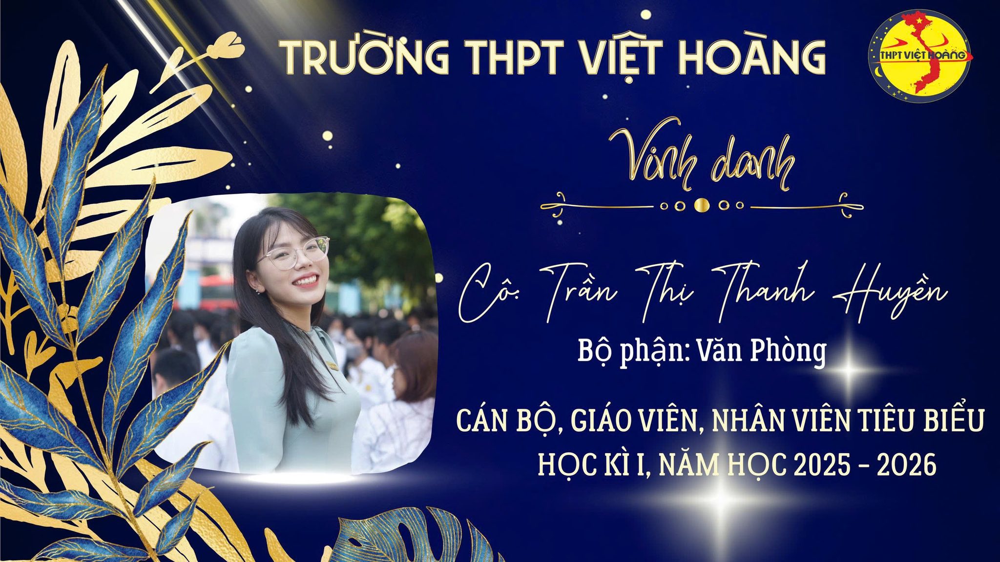 Nhà trường trân trọng biểu dương và vinh danh các thầy cô, cán bộ, nhân viên đã hoàn thành xuất sắc nhiệm vụ, tiêu biểu trong công tác chuyên môn, quản lý, đổi mới phương pháp giảng dạy, ứng dụng công nghệ thông tin và xây dựng môi trường giáo dục kỷ cương – nhân văn – chất lượng.